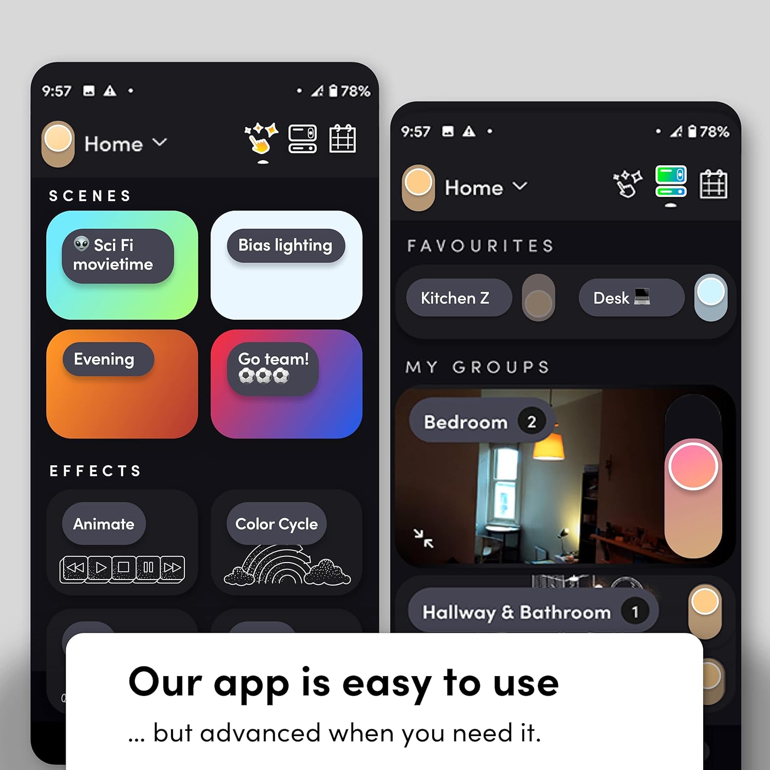 I just installed the LIFX Lightstrip Color Zones, and let me tell you, they are an absolute game-changer! First off, the setup was super easy—just peel, stick, and connect to Wi-Fi. I had them up and running in no time!What I love most is how customizable they are. You can create different color zones along the strip, which means you can mix and match colors to fit your mood or vibe. Whether I’m throwing a party or just chilling, I can set the perfect atmosphere with just a few taps on my phone. The app is user-friendly, making it easy to explore all the cool features.The colors are super vibrant, way better than any other LED strips I’ve tried. The brightness is adjustable, and the range of colors is insane! Honestly, I’ve tried a few different brands, but nothing compares to LIFX. If you’re looking to level up your room or create an epic setup for gaming or movie nights, these are hands down the best LED light strips on the market. Highly recommend! 🌈✨