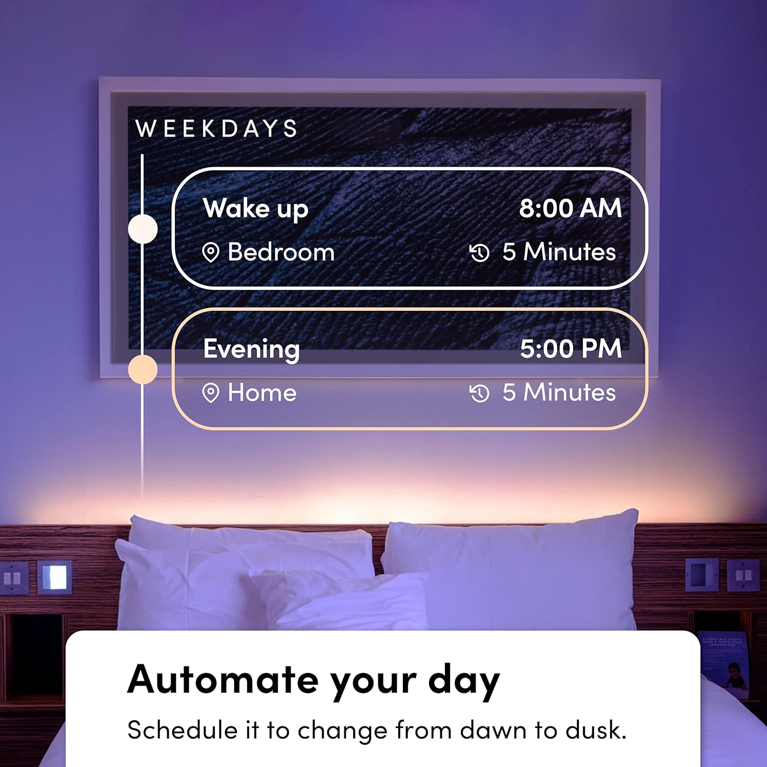 Control: Voice, Scheduling, Scenes, Effects (eg Move), Integrations and fade tools like Apple’s adaptive lighting, Alexa light alarms or Google Sleep/Wake.